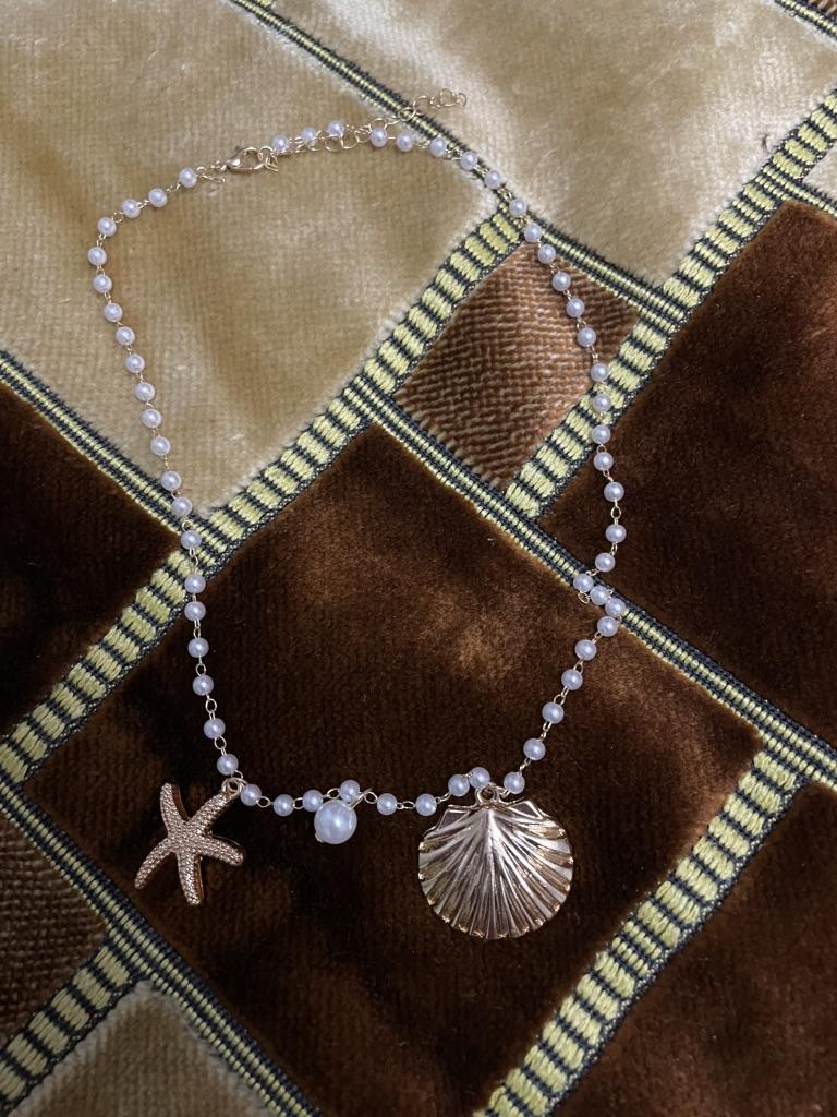 New Ocean Series Pearl Necklace Luxury French High Sense Starfish Shell Clavicle Chain
