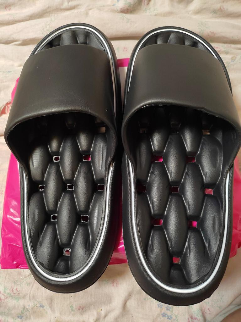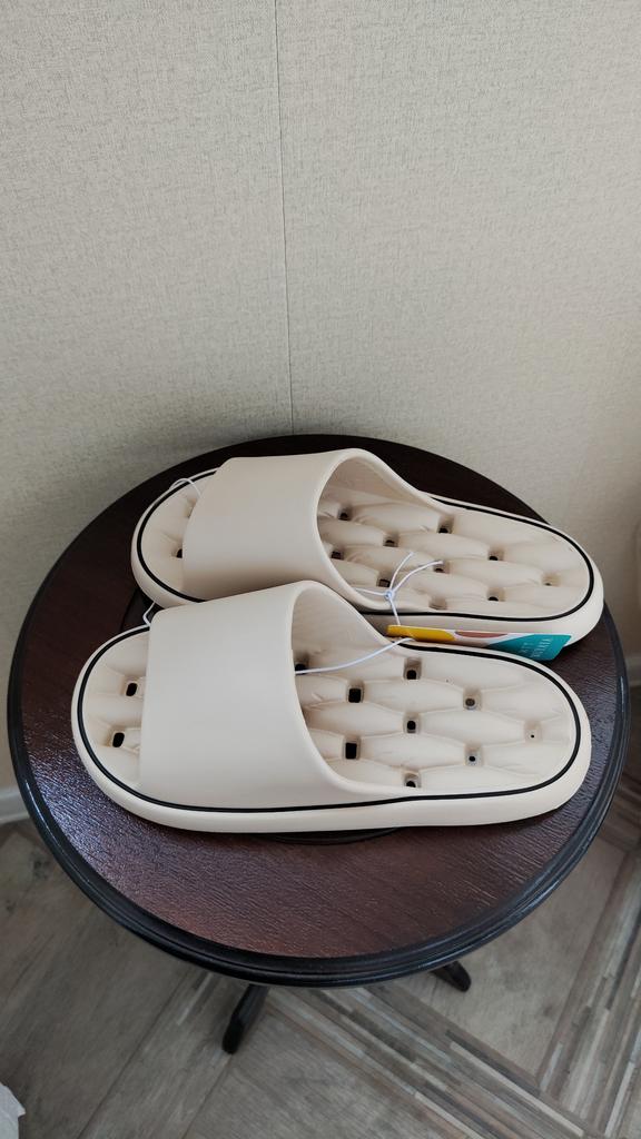 The slippers are of good quality, but it was not clear from the photo that there were holes between the bulges, moisture really will not accumulate, the slippers are only for the pool, you can’t walk on the street.