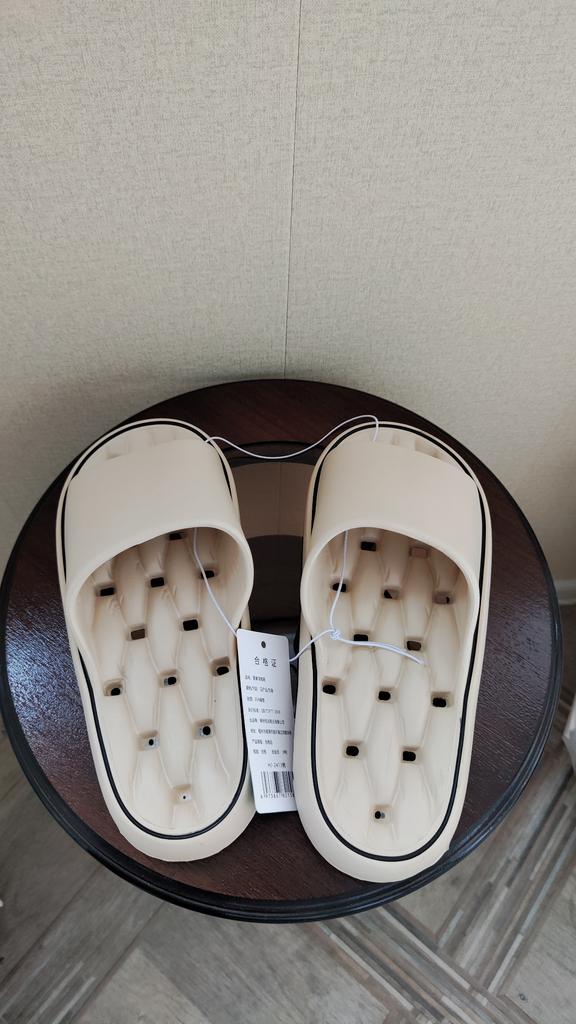 Wonderful slippers. The sole is thick enough. And the holes in the sole are not in vain.
