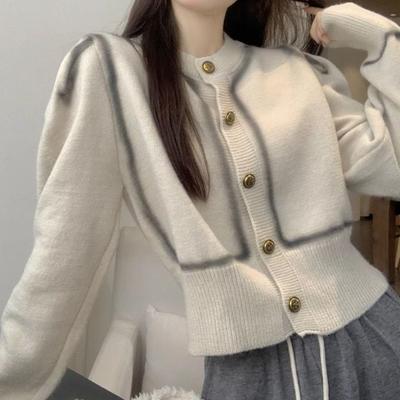 Spring and Autumn Women's Knitted Jacket Small Fragrant Style Long Sleeve Soft Knitted Knitwear Short Sweater Coat Jacket Top