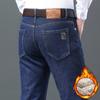 2025 Men's Business Fashion Warm Straight Fleece Jeans Classic Style Winter Thickened Denim Pants Casual Trousers Male