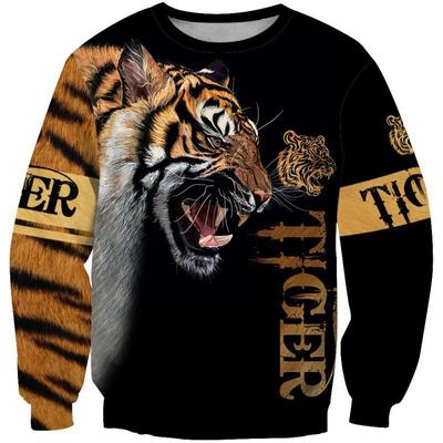 Lions and Tigers 3D Digital Printing Hatless Models Pullover Sweater Men's New Autumn Bottoming Shirt Fashion Trend Tops