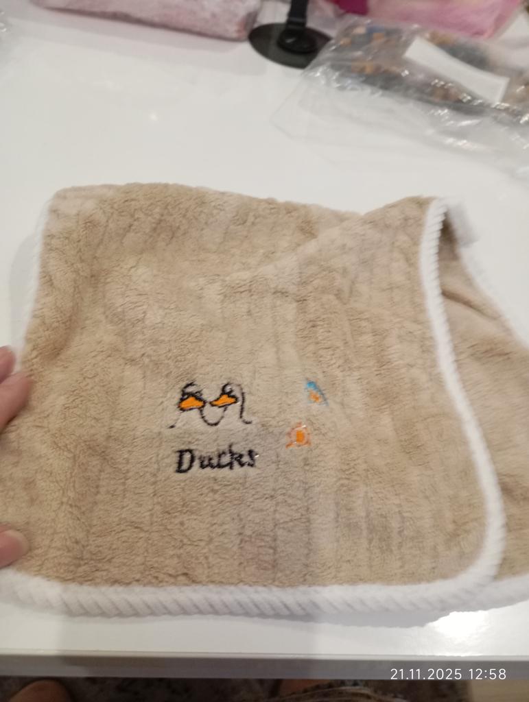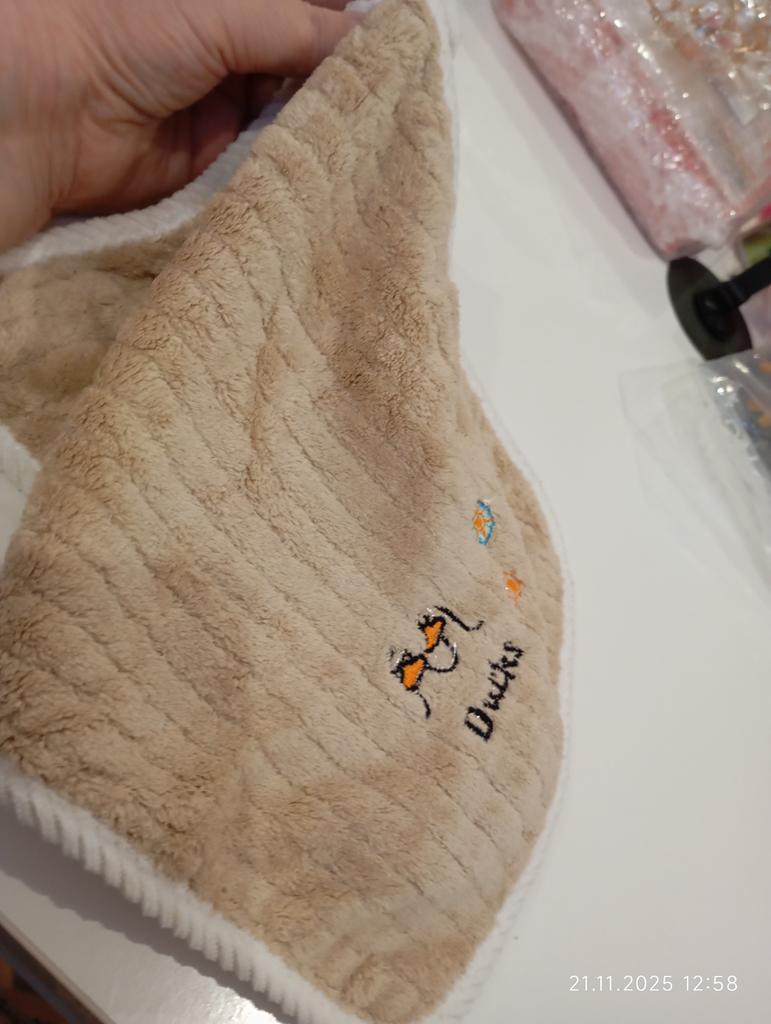 Cute little cloth. Soft, small, doesn't really qualify as a towel. Dimensions are barely met. Sometimes it's short by a centimeter in length, sometimes in width.x