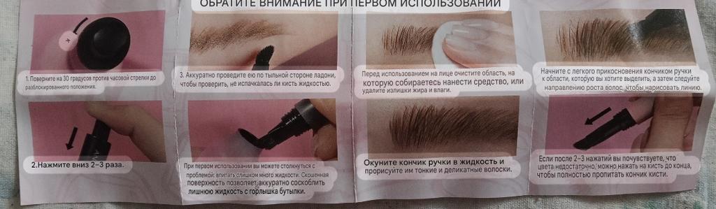 Durable! Does not smudge when touched. The brush is soft, made of bristles. Before using in the closed state, you need to press the cap. This is how the paint is supplied in portions. The drawn hairs look as natural as possible. The main thing is not to overdo it, 2-3 strokes are enough for one eyebrow.. I like the result.. What I was looking for. Cons: it ran out quickly.