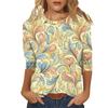 Ladies' Fashionable And Casual Seven Quarter Sleeve Floral Print Pullover Top