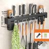 Wall Mounted Knife Holder Stainless Steel Shelf Kitchen Nail-Free Storage Rack Cutlery With Hook Kitchen Cabinet Organizer