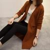 Mid Length Knitted Cardigan Women's Korean Loose Sweater Lazy Style Solid Color Long Sleeved Sweater Jacket for Autumn and Winter