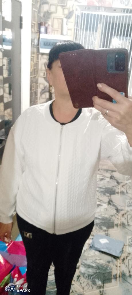 The knitted jacket fits well, pure white, beautiful knitting. It's strange why in one country The size is defined differently. This is what is confusing. I recommend...