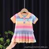 Stylish Summer Dress for Toddler Girls (1-3 Years) - Striped Lapel, Short-Sleeved, Pleated Skirt