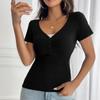 Women's Loose Casual Solid Color Slim Fit Lace Patchwork V-neck Short Sleeved Top