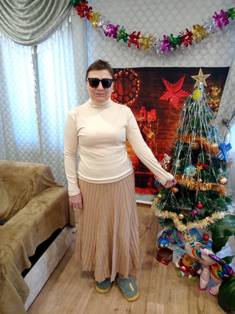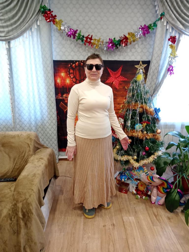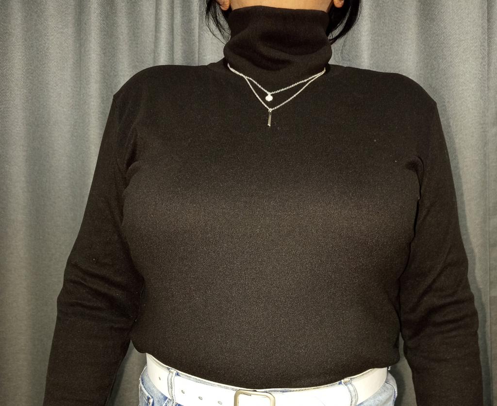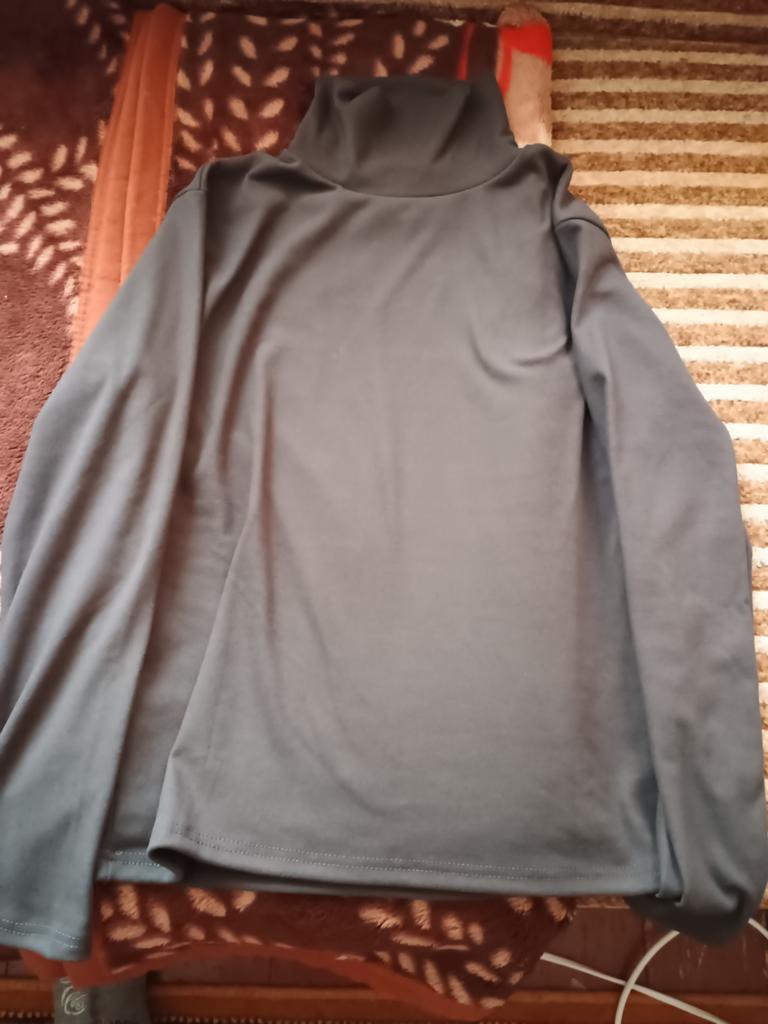 I bought such a sweater in black, size 2XL, and it was a bit too wide for me. I bought this purple one in size XL, but for some reason it's also not true to size; I should have taken L. But I like it. It's made of knitted lingerie fabric, but it's warm. Thank you to the Joom workers!!!