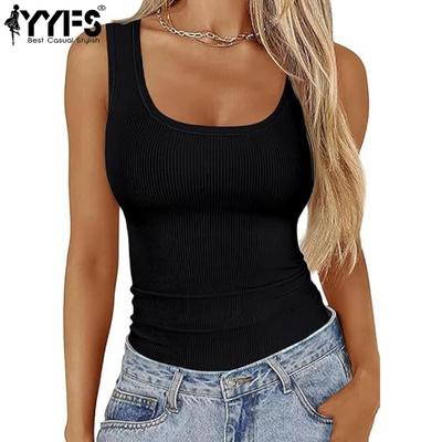 Women's Fashion Casual Solid Color Print Sleeveless Square Collar T-shirts and Tops