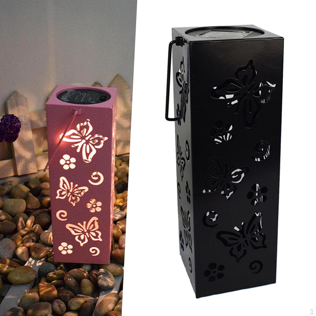 - The solar lantern casting a bright, warm light with butterfly pattern, which looks like a butterfly flying, very beautiful and vividly.