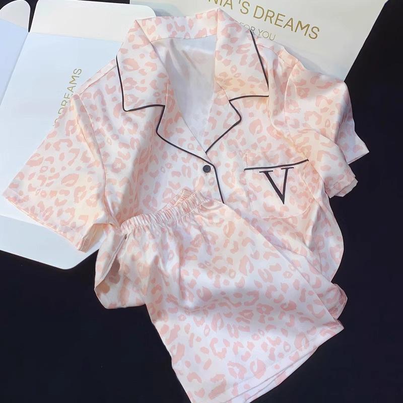 Summer Advanced Sense of Women's Ice Silk Pajamas Homewear Suit Spring and Summer Leopard Print Full Print Pajamas Homewear