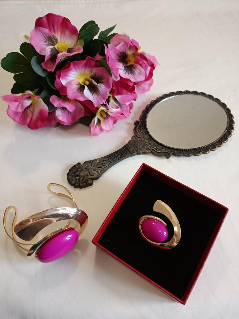 And today, June 1st, is my jubilee, I turned 70! Aaa! And I'm doing a review of the beauty, a bracelet and a large ring with a fuchsia-colored stone. A beautiful set to the previously purchased necklace and earrings set. For a jubilee, you can wear it all. And then mix and match two pieces with the outfits, it will be magnificent.