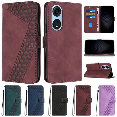 For OPPO A17 Case Oppo A17 Etui 3D Geometric Lattice Wallet Case for Fundas OPPO A 17 A16 A15 A12 A7 A5S A17K A15s Phone Cover
