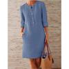 YYFS Women's Fashion Spring Fall Solid Color Print Long Sleeve O-Neck Loose Waistline Casual Dresses