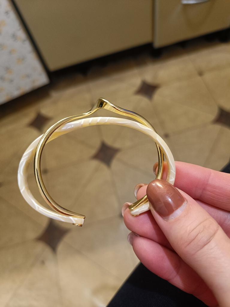 Luxury Fashion Simple White Shellfish Board Bend Metal Geometric Overlap Opening Bangle Bracelet Women Jewelery Pulseras Mujer