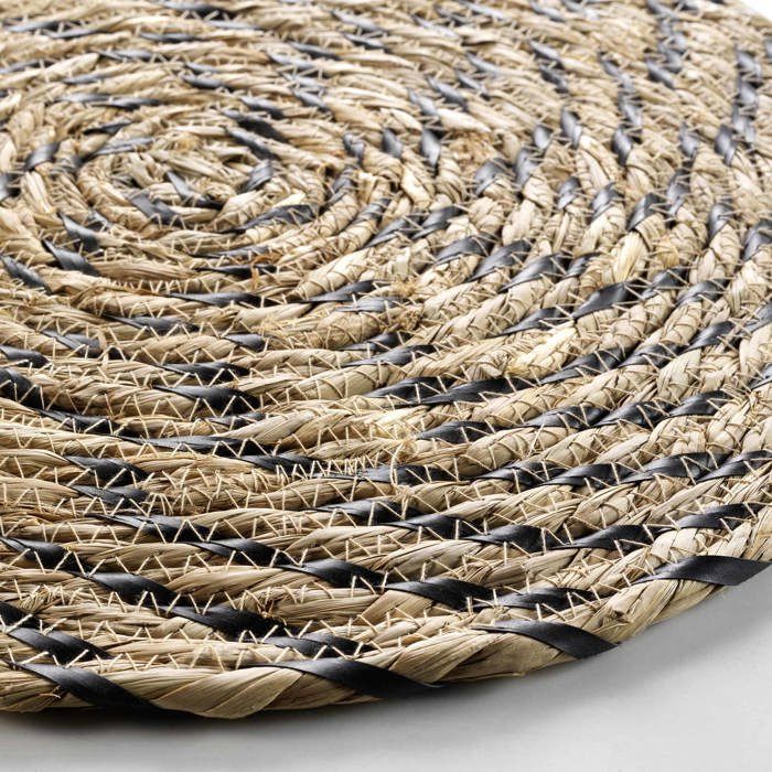 Set de table paille rond 38 cm Nala noir