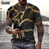 Summer Round Neck 3D Animal Skin Pattern Snakeskin Leopard Printed Top Fashionable Casual Short Sleeved Men's T-shirts