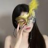 Sexy Lace Half Face Mask with Feathers - Halloween Makeup Masquerade Party Accessory