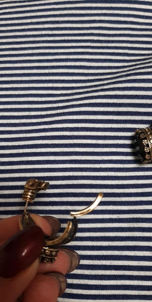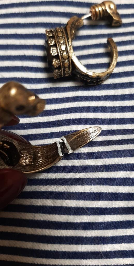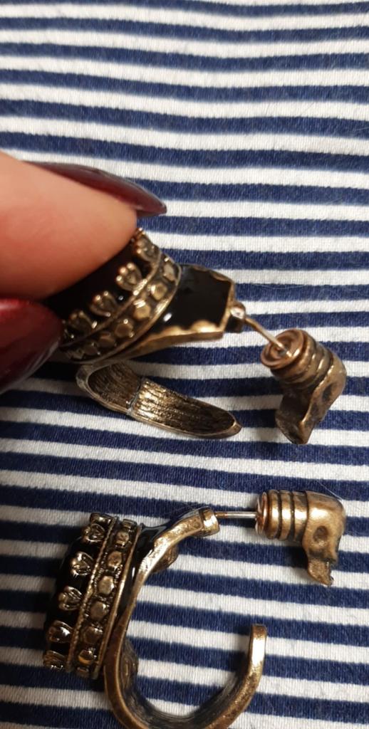 ModelRetro Distressed Gold Circle Earrings with Black Gem and Skull