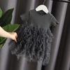 Summer Children's Clothing Solid Color Short Sleeved Girl's Princess Gauze Dress Fashionable Fluffy Spliced Cake Dress 1-7Y