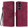 For Samsung Galaxy A17 Case Imprinted Totem Skin Feel Wallet Leather Phone Cover with Hand Strap