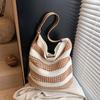 New Tote Bag Niche Design Contrasting Color Striped Knitted Bag Simple Hollow Portable Shoulder Bag Women
