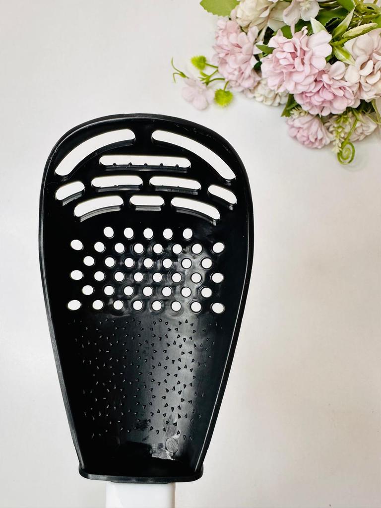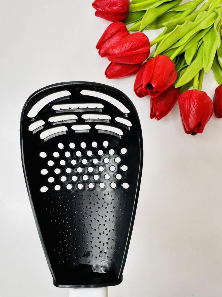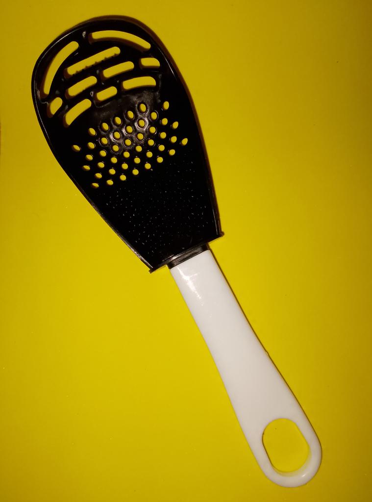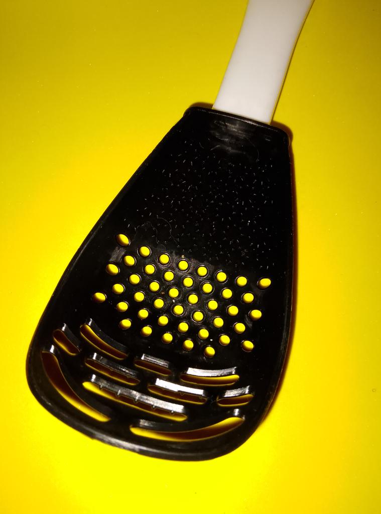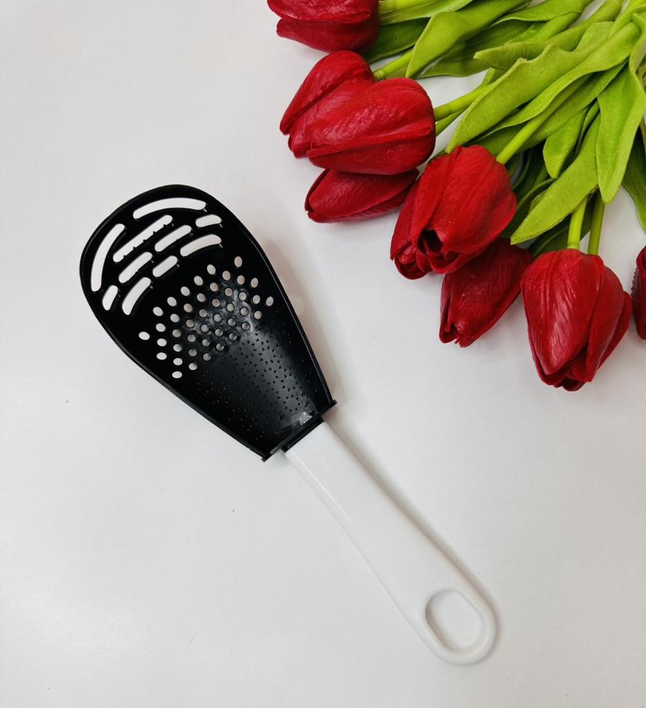 Universal kitchen spoon. This multifunctional kitchen spoon is suitable for mixing, grinding, removing foam, extracting from hot water, making purees, chopping, and will become an indispensable assistant in the kitchen. This spoon can be used to remove dumplings, dumplings, pasta, vegetables or meat from hot water. Use to remove foam from broth during cooking. Also use as a masher - for preparing vegetable and fruit purees. Hard spikes on the bottom outer part of the slotted spoon will help you quickly chop garlic and ginger. The cutlery is made of high-quality plastic and does not absorb odors and tastes. Dimensions: 23x7.5 cm. The spoon is comfortable to use. I recommend.