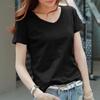 Bamboo Cotton T-shirt Women's Loose Solid Color Orange V-neck Top Short-sleeved Women's Summer New Solid Color Bottoming Shirt
