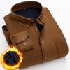 Winter Men's Warm Shirt Corduroy Middle-aged and Elderly Long-sleeved Solid Color Fashion Thickened Plus Velvet Casual Shirt