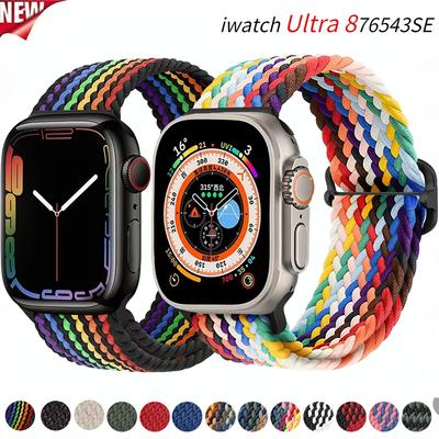 Braided Loop Nylon Strap For Apple Watch Ultra 49mm 46mm 45mm 44mm 42mm 41mm 40mm Elastic Bracelet iWatch 10 9 8 7 SE 4 5 6 Belt