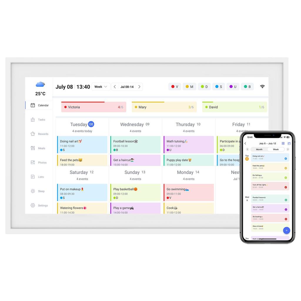 V. Integrated Photo Display & Event Tracking - Combines practical scheduling with personal photo display capabilities, creating a versatile family hub that manages both practical planning and cherished memories in one device.