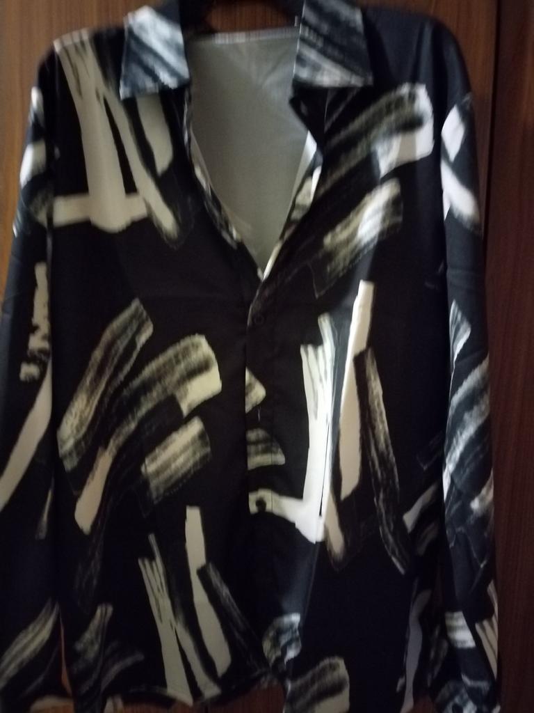 The shirt is straight, short, with narrow sleeves. The fabric is acetate silk. It is not transparent. The color without the photo is dull. The item does not match the photo.