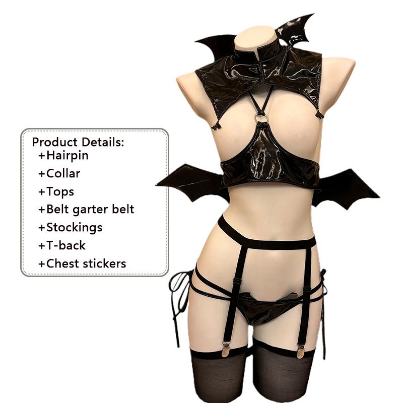Sexy Original Halloween Little Devil Cosplay Costumes Bat Girl Bikini Desiagn Devil Wings Leather Unifrom Tempting Underwear