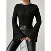 Spring Autumn Knitted Sweaters Flare Sleeve Loose Jumper Tops Women O-neck Ladies Casual Solid Sweater Bottoming Pullover Female