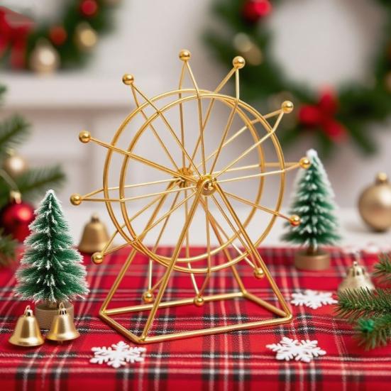 Sky Wheel Ornament with LED Light Rotatable Iron Wire Ferris Wheel Model Metal Figurine