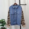 Splicing Denim Leopard Print Knitted Cardigan Autumn and Winter New Loose Casual Design Temperament Sweater Jacket Women