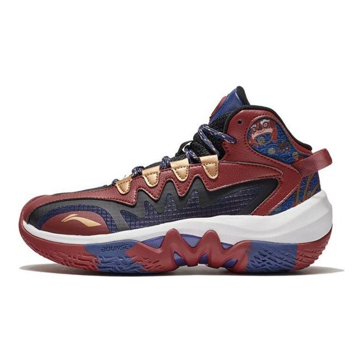 Li Ning Pioneer Team 2.0 Shock Absorbing Basketball Shoes Kids Sneakers Deep-Red Blue YKBS004-3