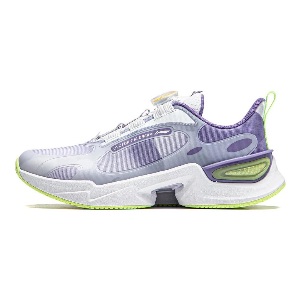 Li Ning Kids Qiang Yue Shock Absorbing Breathable Low Top Running Shoes Kids Running Shoes Gray Purple YKCU026-6