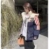 Cotton-padded Jacket Girls' Middle School Long New Tooling Contrast Color College Wind Bread Clothing Winter Hooded Loose Cotton-padded Jacket.