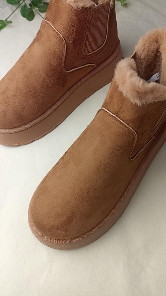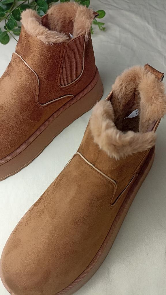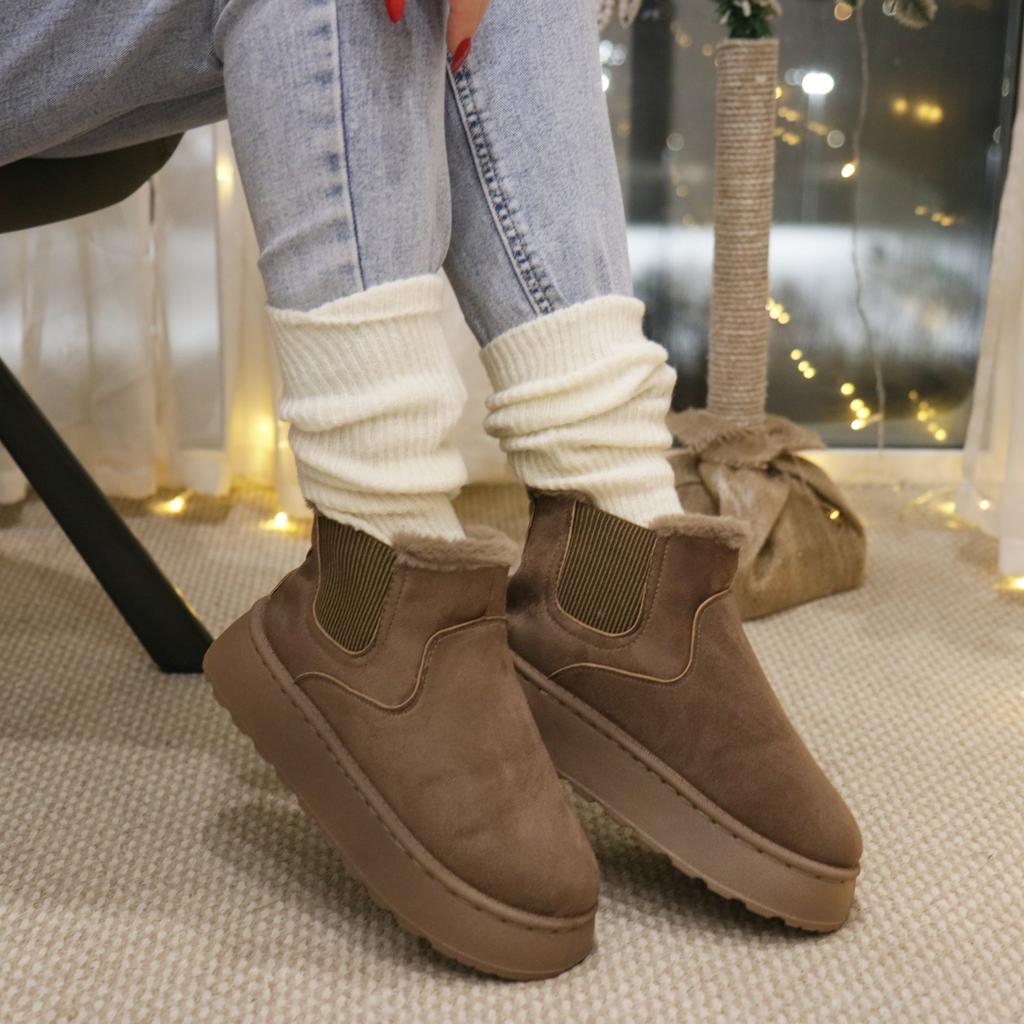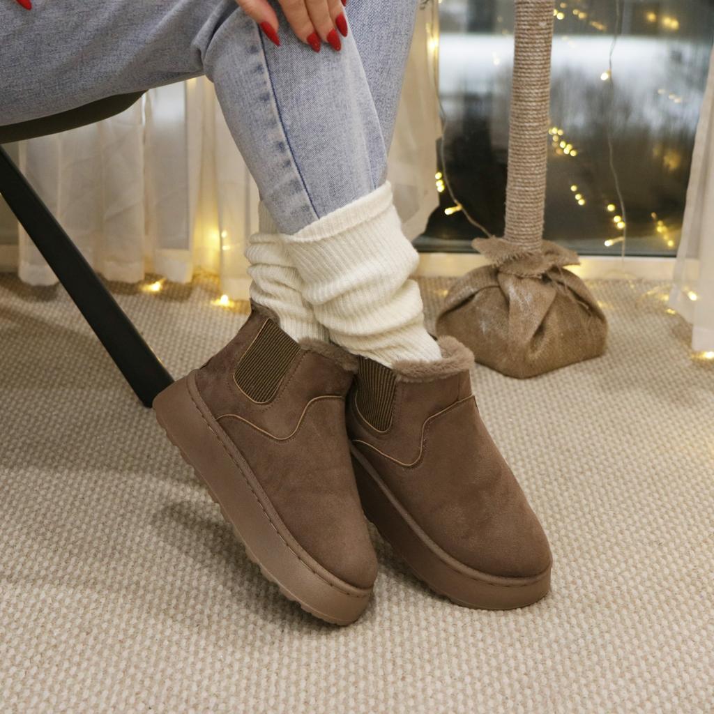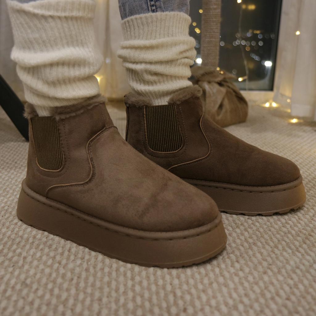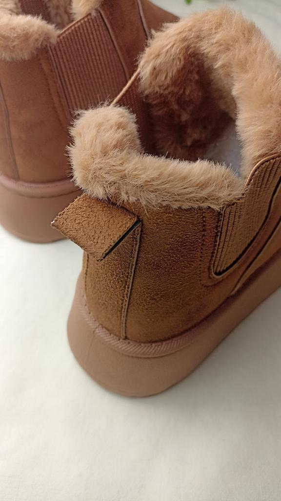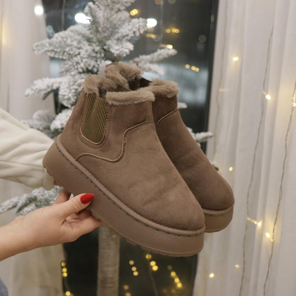 Women's fleece boots in large size – perfect comfort and warmth in the cold season These boots are designed for women who are looking for a combination of comfort, warmth and style in large sizes. The inner material is made of soft short velvet that provides an especially pleasant feeling of warmth, perfect for the cold days.. A thick, sturdy sole provides stability and support throughout the day, and the elastic strap ensures a comfortable fit that doesn't constrict. With a round toe and a design tailored for larger sizes, the boots are suitable for everyday use and will add a fashionable touch to any outfit.. An excellent choice for women who want to keep their feet warm and comfortable without compromising on style!