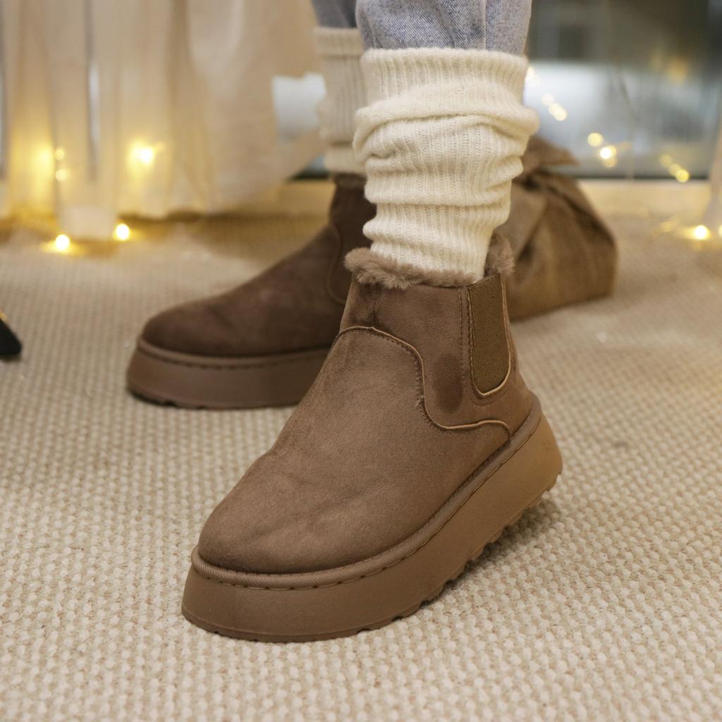 Plus-size Shoes with Fleece Round Toe Boots, Women's Thick-soled Elastic Band Fleece Cotton Shoes