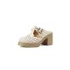 Fashion New Summer Slippers Genuine Leather Slippers for Women Fashion Hollow Out Mules Round Toe High Heels Cover Toe Slippers Sandals