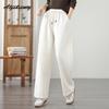 Plus Size Autumn Winter Women Thick Warm Pants High Waist White Grey Casual Loose Straight Trousers Drawstring Basic Ladies' Thicken Pants