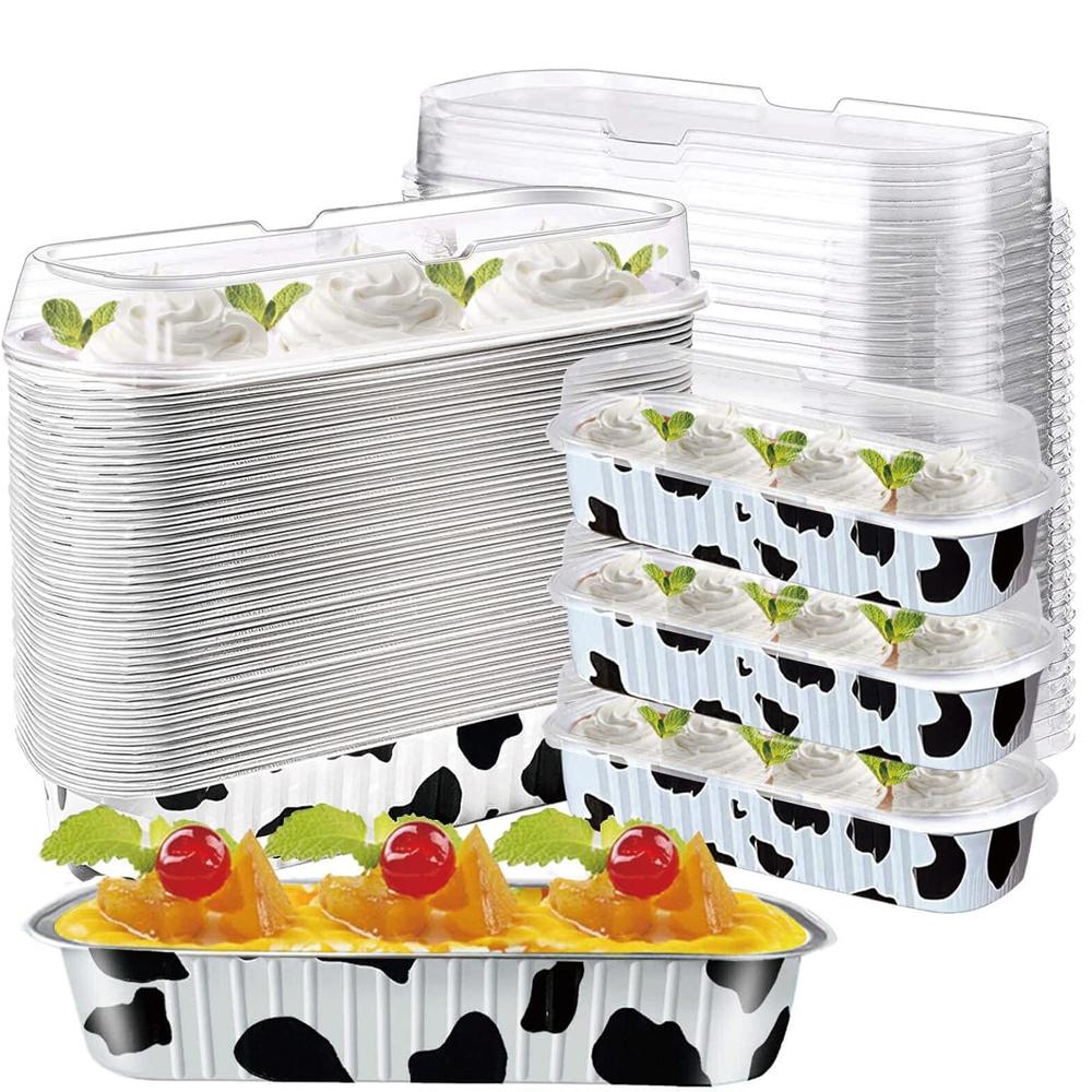 Mini Cake Pan with Lid Mini Baking Pan Aluminum Foil Long Baking Cup Disposable Aluminum Foil Bakaing Pan Brownie Cake Liner