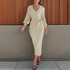 Western Style New Fashion Lace-up Slim Fit Knitted Dress Knitted Long Sleeved Dress