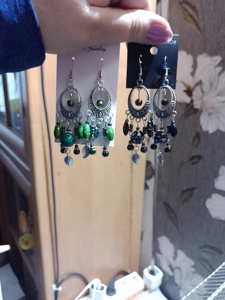 I'm giving it 5 stars, but the product is of poor quality. I bought two pairs of earrings in different colors. The black pair is perfect, they look great when moving. In the blue pair, one earring is more or less okay, the other sticks out to the side somewhat crookedly. Visually, it's shorter.