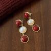 80s Hong Kong Style Red & Blue Clip-On Earrings for Non-Pierced Ears – High-End French Luxury Stud Hoops